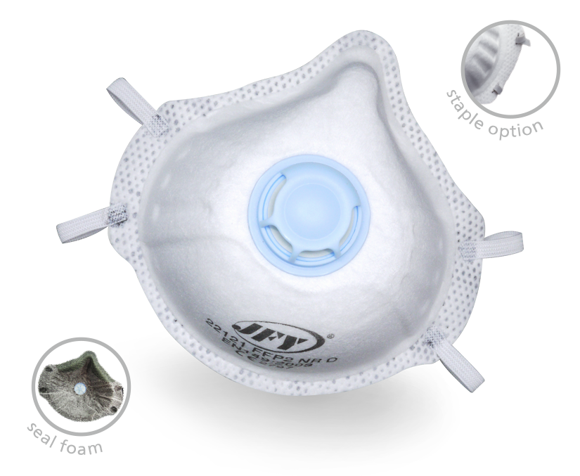 Exhalation Valve Reduces hot air build up, and easy breath in hot and humid working place. |